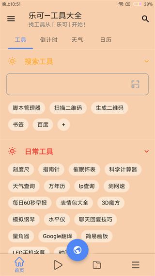 不少用户的手机上或多或少都会下载不少工具,比如说日历、天气、图片编辑、计时等等不同的工具,特别的占用手机的内存,如何解决呢?那就一定不要错过这款乐可工具箱,其中为用户们带来了许多强大的功能在其中,使用起来非常的方便!许多工具都能够在其中搜索到使用,感兴趣的用户不妨来下载试试看吧!
