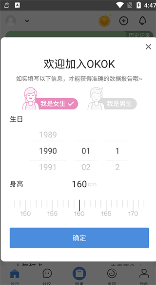 1、首先在本站下载安装好软件后,使用手机号注册登录进去。2、然后设置一下自己的性别和生日,最主要的是身高。