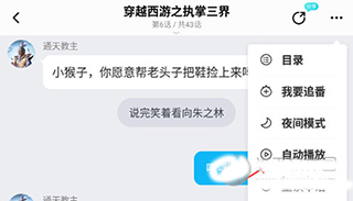 7、如图所示,小说已经开启了自动播放模式,不需要点击屏幕,对话会自动展示出来,也可以选择图中的暂停按钮来停止自动播放;