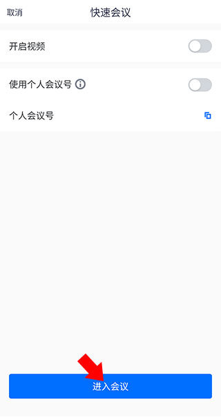 2、来到下方界面后,点击最下方的进入会议按钮