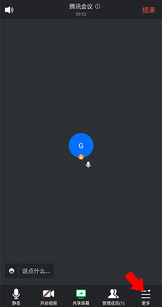 3、进入会议成功并邀请成员开始会议后点击右下角的更多选项