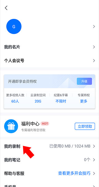 7、进入个人界面后点击我的录制选项
