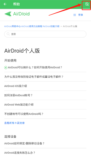 在您的设备上打开AirDroid应用程序,转到我>帮助>点击右上角连接诊断工具图标