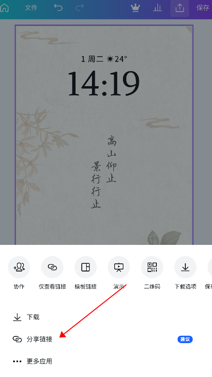 制作完成的设计可直接保存到手机,也可生成在线链接分享给他人,或发布到微信、微博、抖音、小红书、朋友圈等平台。