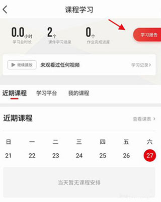4、进入课程学习,找到右下角的学习报告,点击学习报告进入