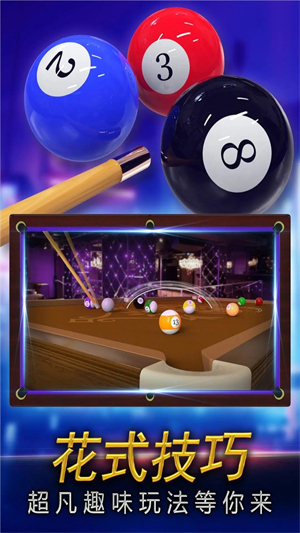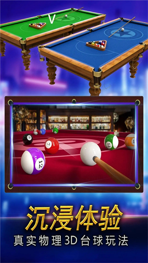 1、在该游戏中玩家可以选择不同的台球竞技挑战玩法模式,丰富的挑战模式,期间还有更多精彩的激情比赛邀你参加,努力成为全球冠军吧
