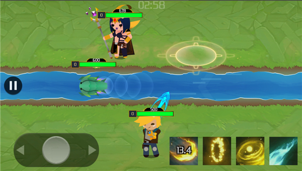 2、河道分割战场,一个英雄在一边,这样简单地操作模式,只需要用两个手指就可以完美操控,还可以通过移动躲避对手的技能,不断提升段位