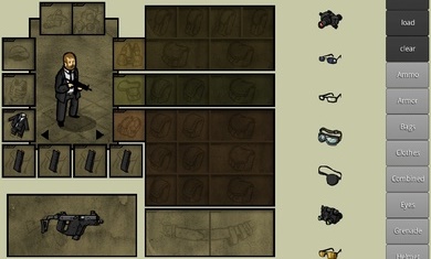 进入游戏首页,游戏开始后可点击右侧一列框中的任意一项(初save.land.clear)每一项为所对应的内容。例:bag为书包和军用背包,eye为夜视仪和战术护目镜。用手拖动至人物四周对应的方框内,如果对应方框错误则无法保留所选物品。注:暗色部分需放置背包等物品解锁贮存空间