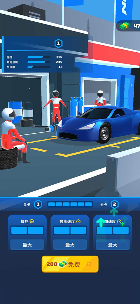 5、操纵、最高速度以及加速度,都可以升级,全部升满后,你的汽车将迎来大改造,更快超越对手哦!