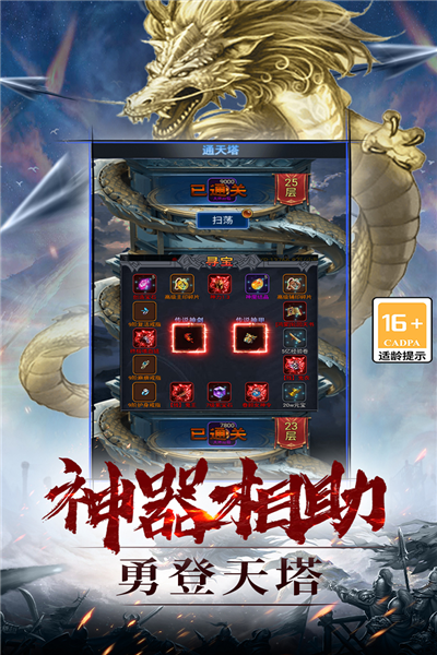 装备靠打爆率高,全可回收拿元宝,复古版本冰雪装备全部靠刷,神器默契自由搭配,小怪也能掉终极