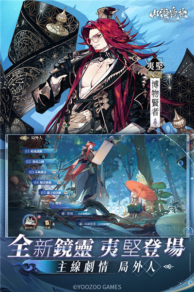 邀请苍月白龙、黒田、ホノジロトヲジ、村山龙大、萩谷薫等顶级画师,携手打造充满神秘气息的大荒世界,展现每位镜灵与众不同的独特魅力。国内知名声优赵路、山新倾情演绎,独特声线描绘不一样的山海绘卷。