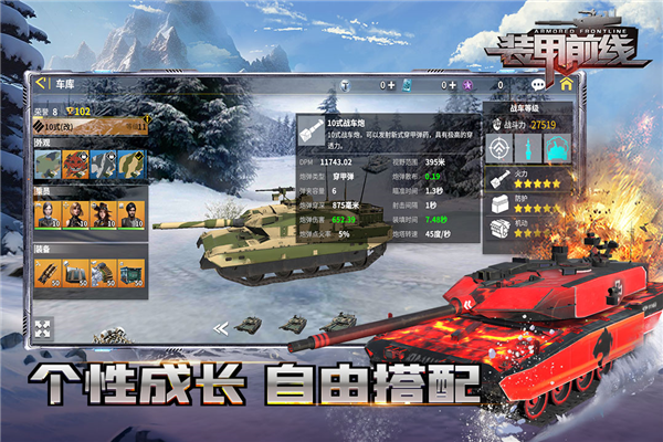 2、装甲前线目前可供玩家获取并升级改造的陆战载具,包括主战坦克、步兵战车、突击炮、火箭车等。