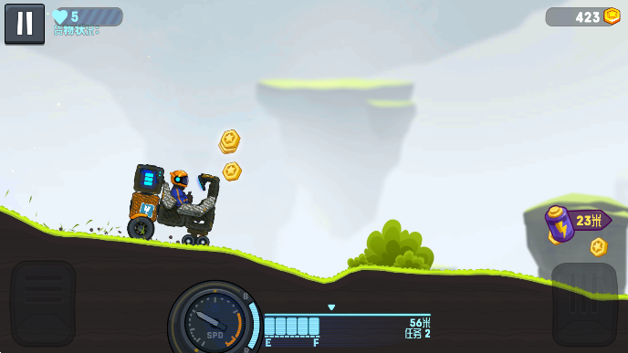 《越野太空车2》是一款横屏操作的休闲赛车闯关类手游,游戏主要通过横版2D闯关的玩法呈现,我们在游戏中需要驾驶一辆越野车不断的朝着屏幕右方前进,并且还要控制好车辆的速度,毕竟前面的道路是非常颠簸的,如果车辆速度太快了就会导致翻车游戏失败哦,玩家每一次抵达终点还会获得丰厚的奖励,这些资源可以用来升级或购买你的越野车,感兴趣的话就来下载体验看看吧。