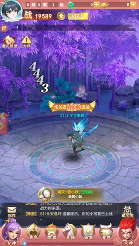 无论是任务和还是副本,都需要进行打怪战斗的操作。如何进行战斗呢,点击地图上的怪物即可进行战斗,战斗胜利会获得4399的经验和灵力。