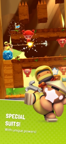 2、星光大冒险游戏内有9种炫酷套装随意更换,每种都有独特能力,用不同套装游玩同一关卡给你完全不同的体验,每种套装都可以升级,得到超级力量,所向披靡