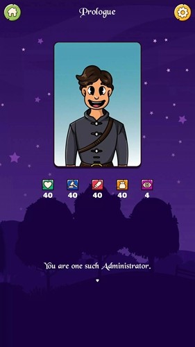 在很久很久以前,某个王国的南部海域有一座巨大的岛屿。你被派造至那座岛担任其某个村庄的地方官。开始了为期4周的试用期。只不过试用期间并非一帆风顺。因灾荒而崩溃的村庄经济,充满威胁性的土匪团,恐怖的瘟疫,王国极度排斥的土著宗教等等各种外界因素,都在不断地威胁着你的治理。每当这些事件发生时,你都要做出相应的决定来克服村庄的危机。你做出的每个选择,甚至会直接改变你在试用期结束后的命运走向,或是最终结局。正因如此,你的每次选择都至关重要。