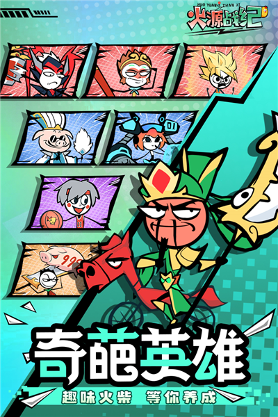 1、奇葩火柴人,隐藏超能力量: 火源战纪游戏采用独特的英雄设计,如“猪葛亮”、“马头超”,他们的搞笑外表之下隐藏着强大的战斗技能,等待你的发掘。