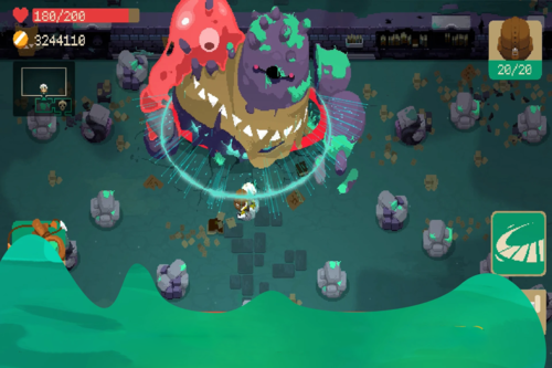 d.以及赚钱利器:一个有绿色裂痕的柱子,点柱子会出怪,每打玩一轮怪场景的宝箱会解锁并升级,最高紫色,记得开怪前先拿空箱子。这里金色和紫色箱子里有那些高价的带“目标物品变成该物品”诅咒的材料,让它指向低价但数量多的材料可以在回家以后获得大量的高价素材。注意这种诅咒效果在箱子里是不触发的,所以扔传送箱子传回家是无效的