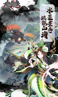 游戏采用了东方水墨的画风,让每个神灵异兽灵动飘逸,更具有东方神话神秘色彩,透过水墨晕染开的山川水系也更为绮丽动人。