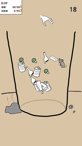 3、玩法简单玩法,不停的捡垃圾,然后去捡一些食物或者说物品,而再用这些内容来给自己增加属性。