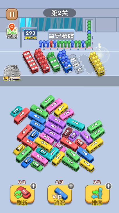这个道具可以帮助玩家自动将乘客根据颜色分配到合适的车辆上。使用后,玩家可以省去手动操作的时间,让游戏更流畅。适合在关卡难度较高或者乘客过多时使用。