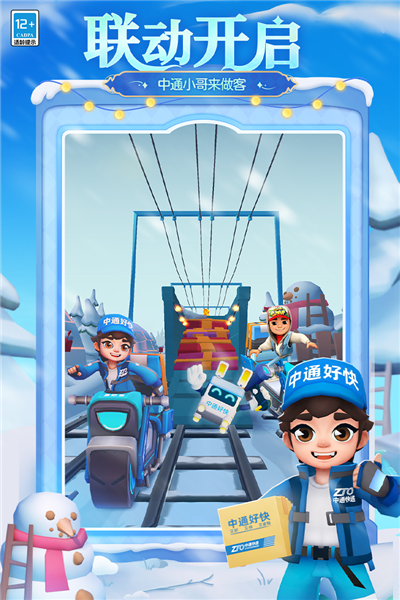 【童话伙伴并肩作战】小红帽、匹诺曹、青蛙王子等童话明星闪耀登场,携手中通小哥,在冰天雪地中极速飞奔,共同谱写充满奇幻色彩的冒险乐章,带你领略别样的跑酷乐趣。