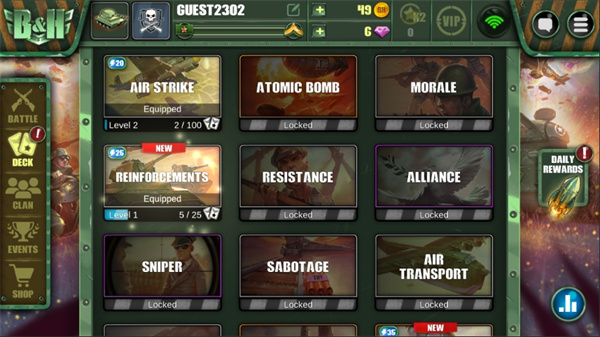 1、经典战争与特殊纸牌的完美结合,创新游戏玩法。
