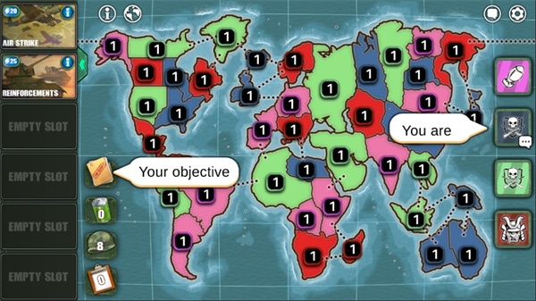 2、通过部署军队、攻击敌人,利用战争策略征服世界。