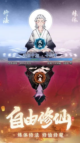在这里,你时刻都在修炼,时刻都在变强。游戏也未设定什么主线任务,任你自由探索自由修仙。希望大家每天只需花少量时间,即可体验从无名小卒到修炼宗师的成长之旅。