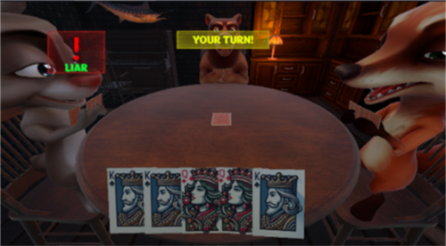 3、在骗子牌中,玩家们需要轮流来报数自己手中的点数,惩罚则是死亡左轮。