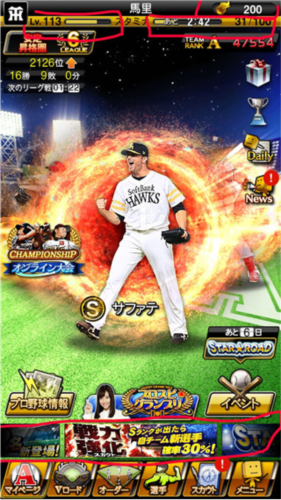 1、首先是开始页面,上方左边是等级进度,最右上是你当前的金球数,也就是我们常说的钻石,元宝,随便你怎么叫,反正是可以用来抽牛逼球员卡以及回复体力的万用道具,金球数量下方的部分是你的体力,体力根据时间自动回复,一小时回复20点,你可以用金球来回复,1金球=20点,没体力你就没法打联赛或者参与某些需要用到体力的特定活动,当然如果你实在想玩可以与好友打练习赛(在活动栏下方可以找到)最下方显示当前的活动信息。