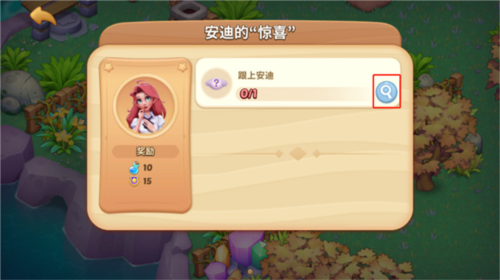 3、这时会重新完成任务的需求,点击放大镜即可帮助玩家快速的找到任务物品;