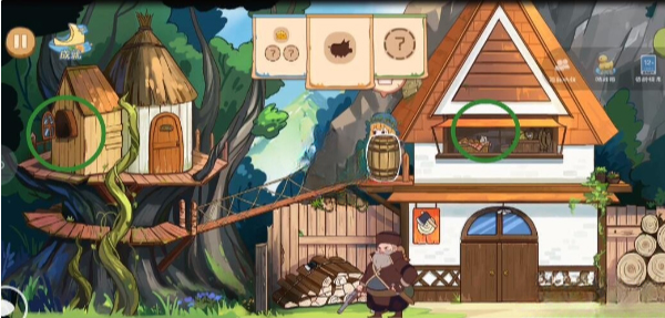 取树上蜂窝投掷猎人,使其留下帽子,通关。