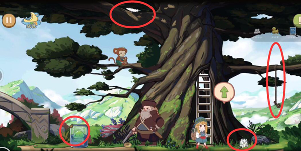 4、用水果篮中的香蕉喂猩猩(避免被发现),即可借助猩猩上树;