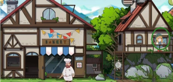 将蛋糕放在右侧房屋窗台,下去再取一块蛋糕;
