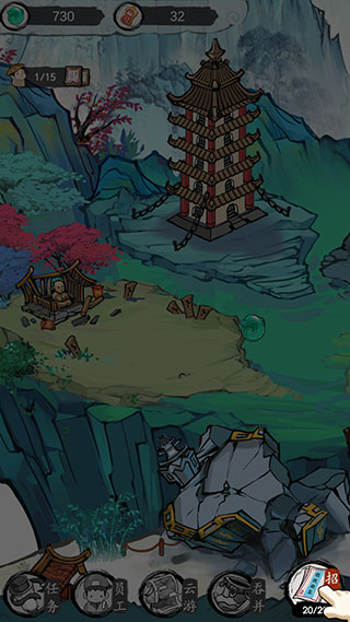 3、仙门建设支持自定义布局,藏经阁与炼器坊的相邻位置影响生产效率;