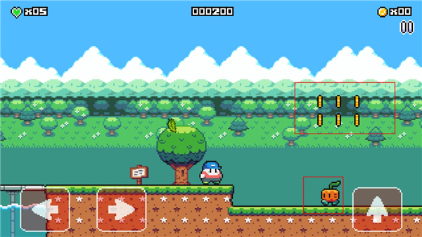 3、进入游戏,玩家可以通过左边的按钮来控制角色进行前后移动,右边的按钮可以控制角色在遇到障碍物时进行跳跃。