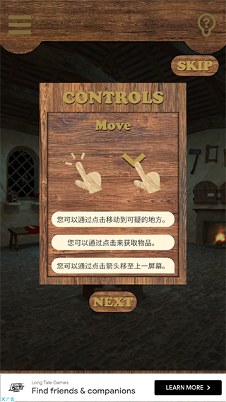 2、可以通过点击来获取物品或是移动到可疑的地方,点击屏幕底部的箭头可移至上一个屏幕;
