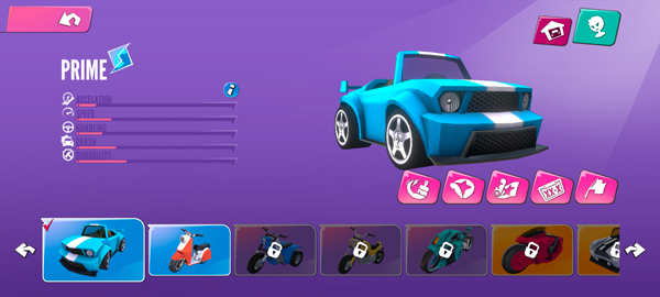 驾驶设计灵感源自现实世界的潮流跑车,或选择极具未来感的科幻摩托车驰骋赛道。通过游戏进程奖励获取车辆,或直接在商店购买。调试车辆性能,应用炫目外观,塑造您的独特风格。