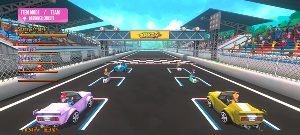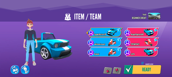 体验漂移,助推,粉碎以及攻防强化道具的乐趣。在大厅世界组队-享受自由驾驶,支持8人同场,内置语音聊天。