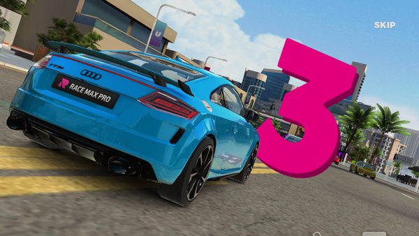 2、游戏开始前会播放一段展示赛车全貌的动画,可点击右上角跳过;