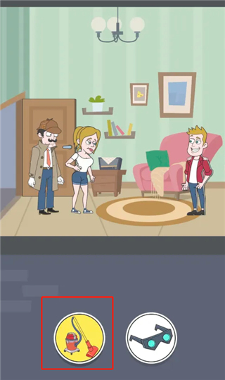 进入场景后,观察周围可互动的物品。选中吸尘器,使用它吸走男朋友的衣服,触发后续剧情。