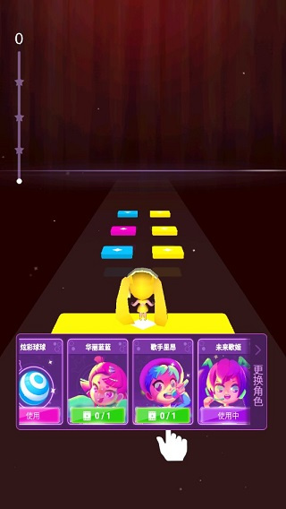 3、指尖轻轻左右滑动跟随音乐节奏使音乐球球落到与球球颜色对应的色块上;