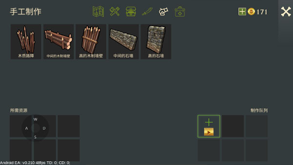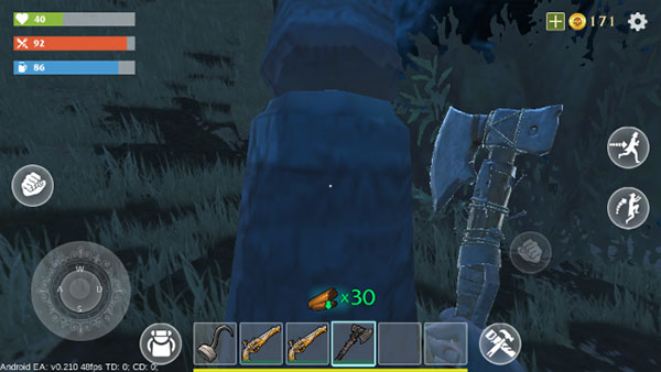 3、不要忽视三大属性:血量、饥饿值、口渴值,达到临界点时,你将会死亡。