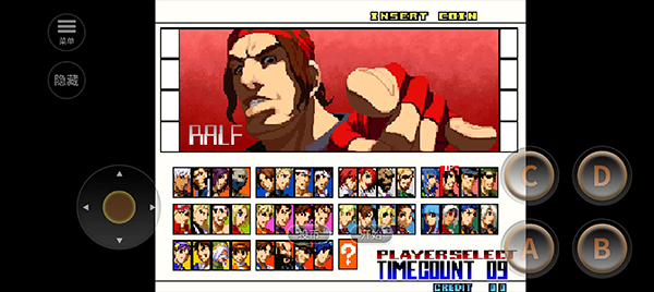 1、滑动摇杆控制分别是控制角色的左右移动和跳和蹲;2、右边四个键位分别是轻拳【A】、轻腿【B】、重拳【C】、重腿【D】;