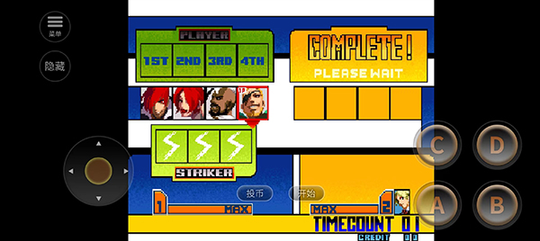 2、右边四个键位分别是轻拳【A】、轻腿【B】、重拳【C】、重腿【D】;