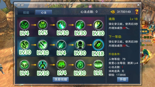 等级:Lv100 心法点数:280 已用:280 剩余:0
