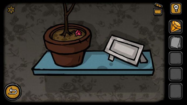 5、推出靠枕的场景后,点击沙发上面的架子上的一个花盆。在花盆里面可以发现另一个红色的钻石,收集起来。