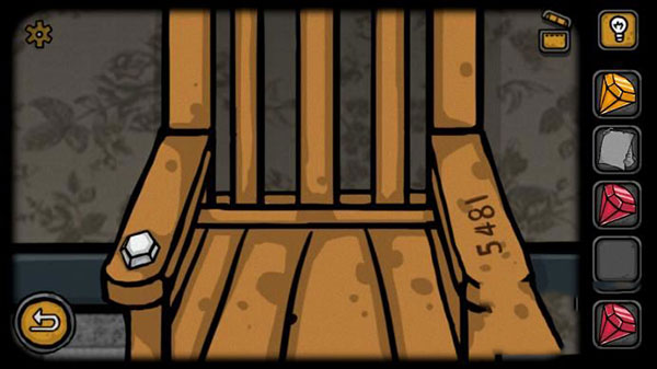 6、下面切换场景,切换到放置一把椅子的那个房子,点击这一把椅子,就可以找到第三块白色的钻石。在这里注意一下一定要记住椅子上的数字“5481”。