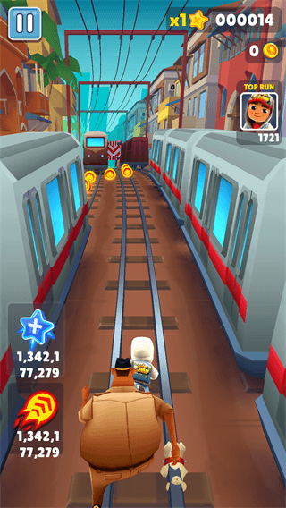 1、地铁跑酷基本操作:虽然跑酷游戏种类繁多,但共同点就是尽量的跑的更远,在保证游戏时间更长的条件下尽可能的获得更多金币,而游戏视角也会跟随角色前进的方向变动。